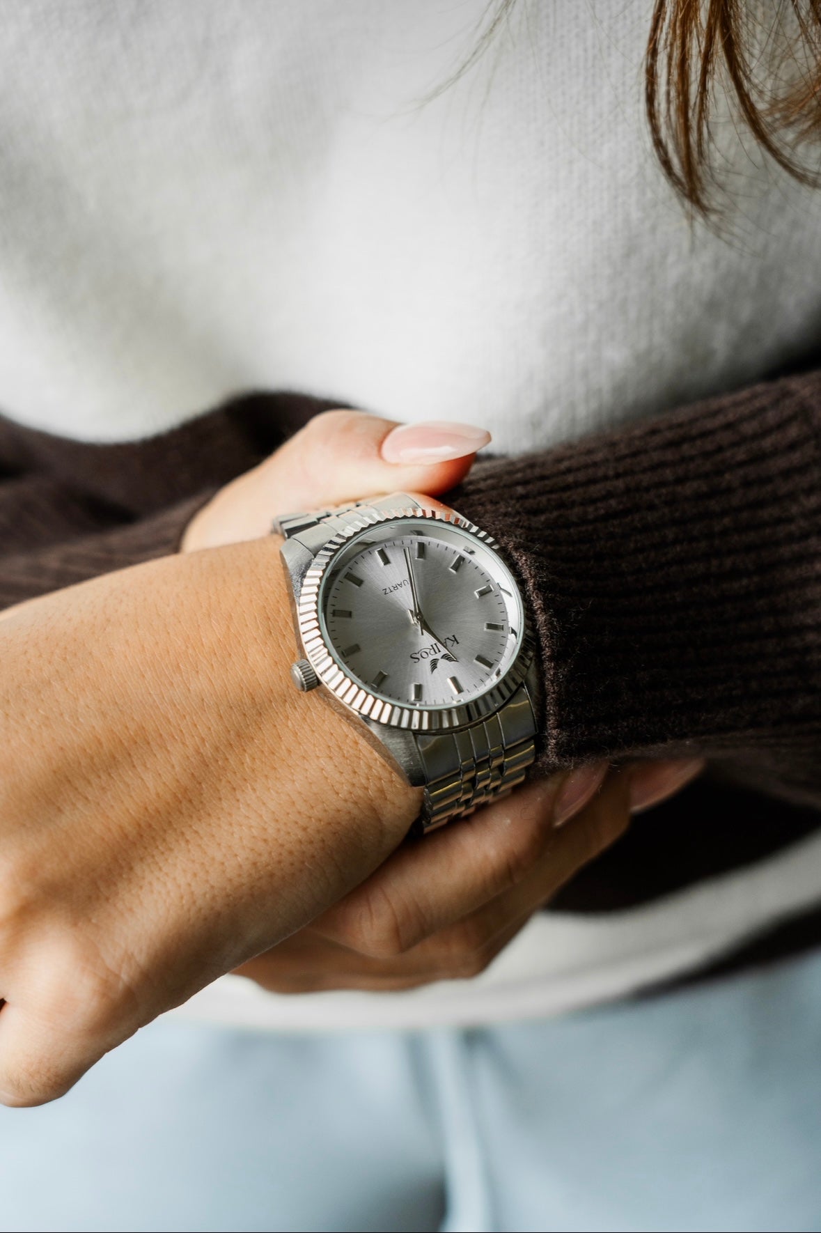 Luminoso come la luna, celebra la purezza del tempo. Linee essenziali e dettagli raffinati per chi cerca un orologio senza tempo